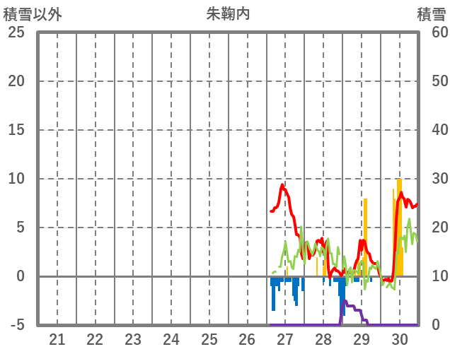 | 日 | 時 | 気温 | 降水 | 風向/風速 | 日照 | 積雪 | 降雪 |