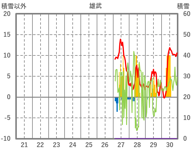 | 日 | 時 | 気温 | 降水 | 風向/風速 | 日照 | 積雪 | 降雪 |