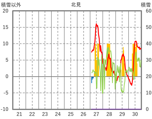| 日 | 時 | 気温 | 降水 | 風向/風速 | 日照 | 積雪 | 降雪 |