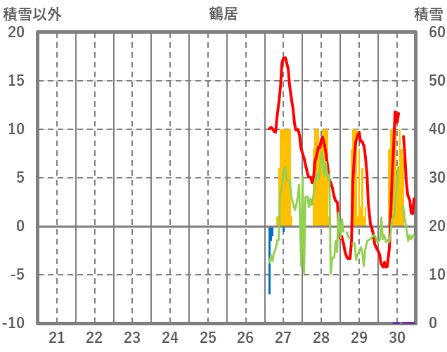 | 日 | 時 | 気温 | 降水 | 風向/風速 | 日照 | 積雪 | 降雪 |