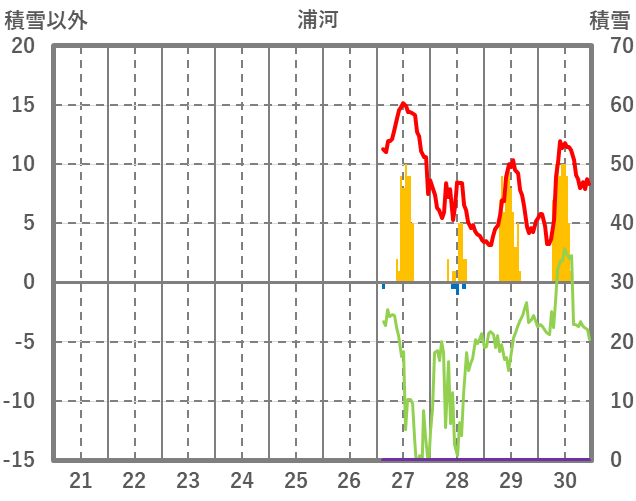| 日 | 時 | 気温 | 降水 | 風向/風速 | 日照 | 積雪 | 降雪 |