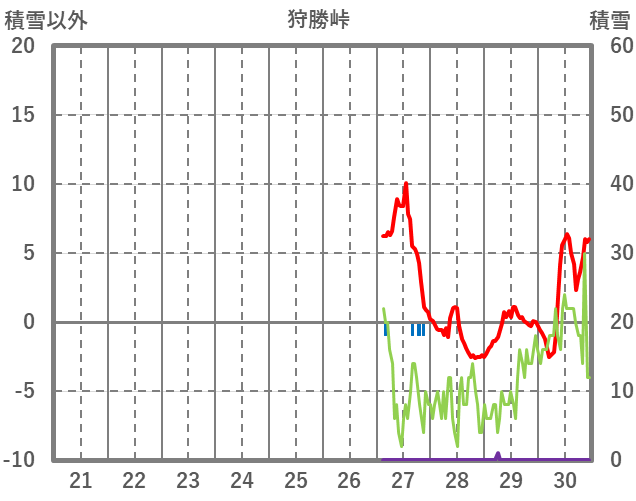 | 日 | 時 | 気温 | 降水 | 風向/風速 | 日照 | 積雪 | 降雪 |