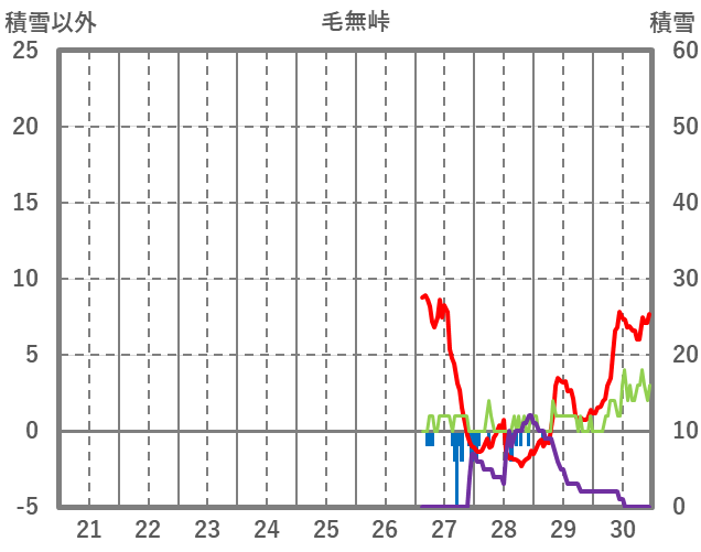 | 日 | 時 | 気温 | 降水 | 風向/風速 | 日照 | 積雪 | 降雪 |