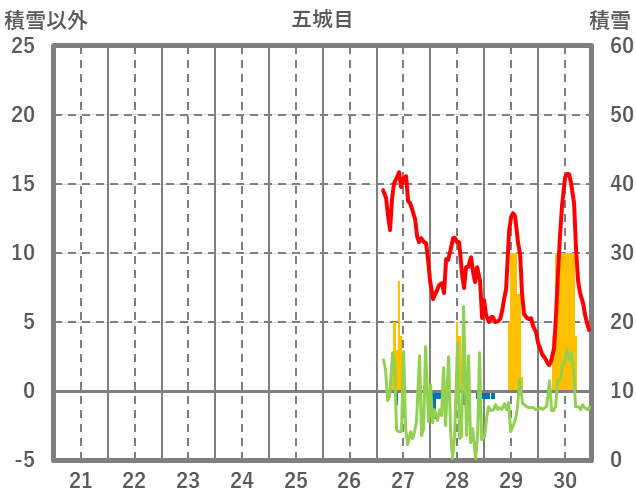 | 日 | 時 | 気温 | 降水 | 風向/風速 | 日照 | 積雪 | 降雪 |