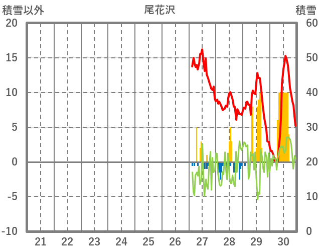 | 日 | 時 | 気温 | 降水 | 風向/風速 | 日照 | 積雪 | 降雪 |