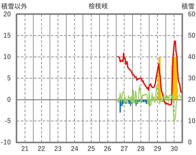 | 日 | 時 | 気温 | 降水 | 風向/風速 | 日照 | 積雪 | 降雪 |