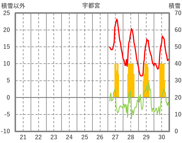 | 日 | 時 | 気温 | 降水 | 風向/風速 | 日照 | 積雪 | 降雪 |
