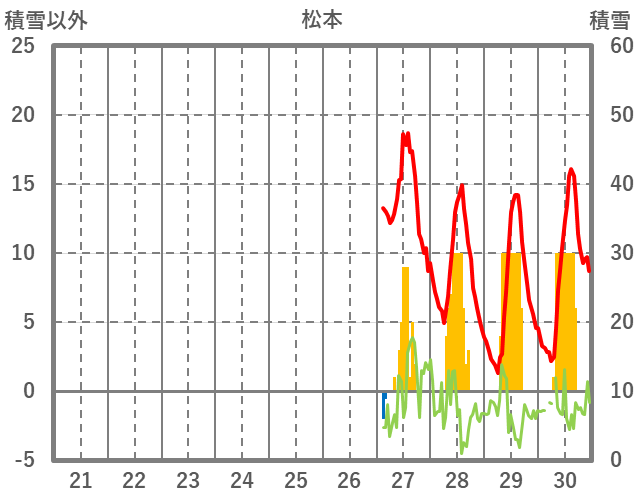 | 日 | 時 | 気温 | 降水 | 風向/風速 | 日照 | 積雪 | 降雪 |