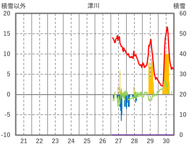| 日 | 時 | 気温 | 降水 | 風向/風速 | 日照 | 積雪 | 降雪 |