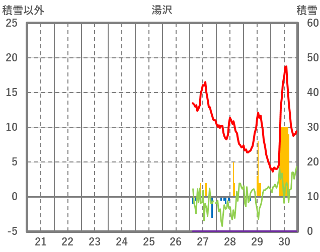 | 日 | 時 | 気温 | 降水 | 風向/風速 | 日照 | 積雪 | 降雪 |