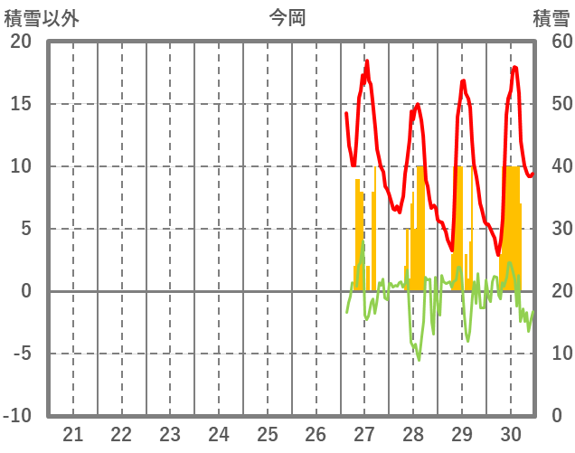 | 日 | 時 | 気温 | 降水 | 風向/風速 | 日照 | 積雪 | 降雪 |