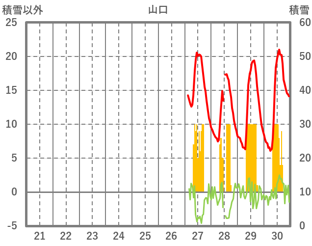 | 日 | 時 | 気温 | 降水 | 風向/風速 | 日照 | 積雪 | 降雪 |