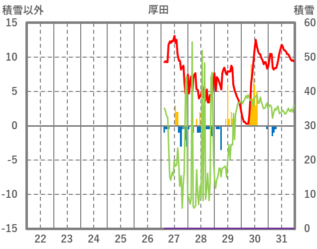 | 日 | 時 | 気温 | 降水 | 風向/風速 | 日照 | 積雪 | 降雪 |