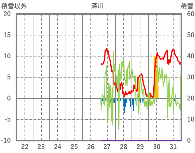 | 日 | 時 | 気温 | 降水 | 風向/風速 | 日照 | 積雪 | 降雪 |