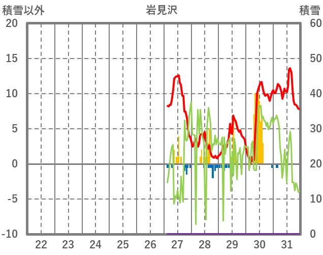 | 日 | 時 | 気温 | 降水 | 風向/風速 | 日照 | 積雪 | 降雪 |