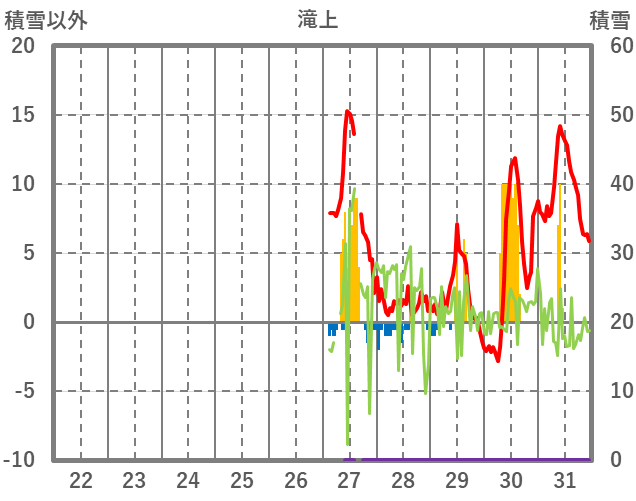 | 日 | 時 | 気温 | 降水 | 風向/風速 | 日照 | 積雪 | 降雪 |