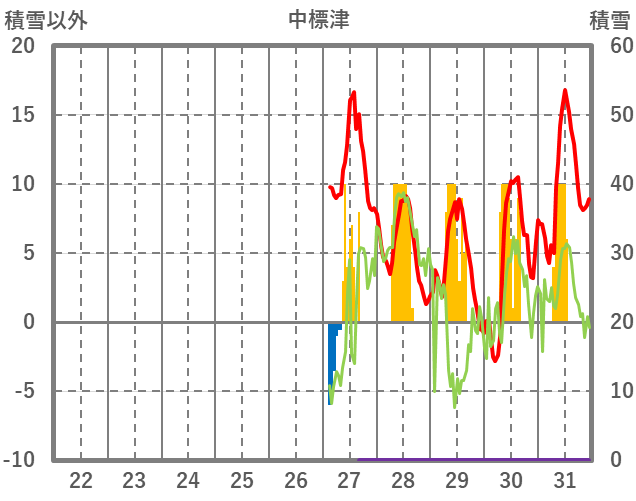 | 日 | 時 | 気温 | 降水 | 風向/風速 | 日照 | 積雪 | 降雪 |