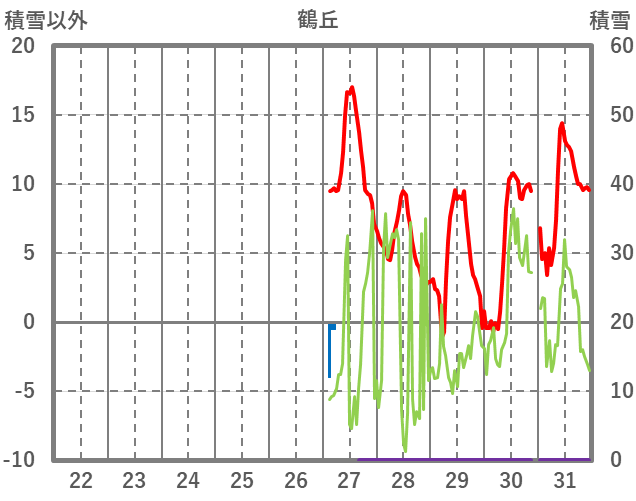 | 日 | 時 | 気温 | 降水 | 風向/風速 | 日照 | 積雪 | 降雪 |