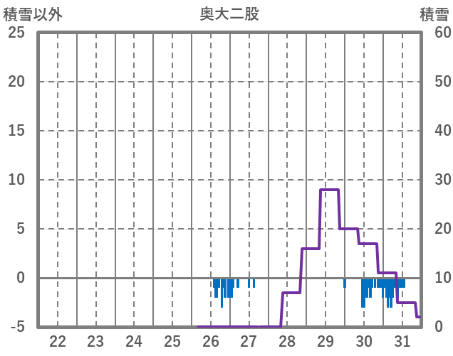 | 日 | 時 | 気温 | 降水 | 風向/風速 | 日照 | 積雪 | 降雪 |