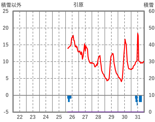 | 日 | 時 | 気温 | 降水 | 風向/風速 | 日照 | 積雪 | 降雪 |