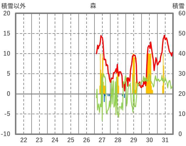 | 日 | 時 | 気温 | 降水 | 風向/風速 | 日照 | 積雪 | 降雪 |