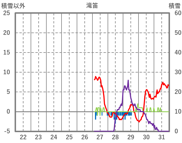 | 日 | 時 | 気温 | 降水 | 風向/風速 | 日照 | 積雪 | 降雪 |