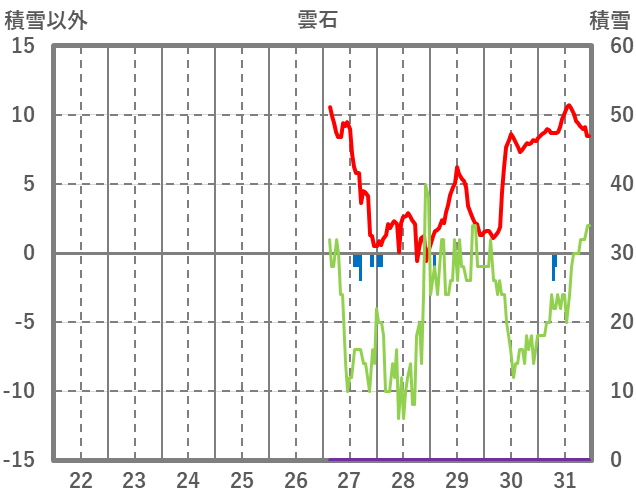 | 日 | 時 | 気温 | 降水 | 風向/風速 | 日照 | 積雪 | 降雪 |
