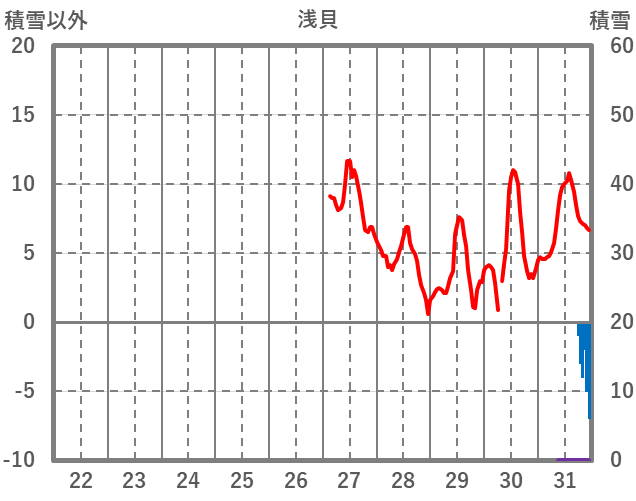 | 日 | 時 | 気温 | 降水 | 風向/風速 | 日照 | 積雪 | 降雪 |
