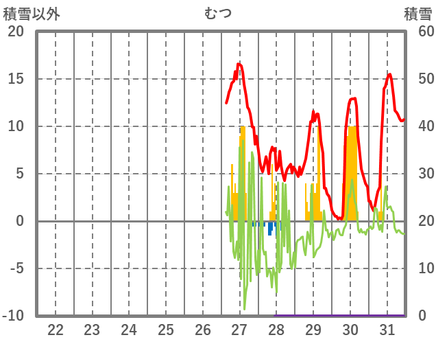 | 日 | 時 | 気温 | 降水 | 風向/風速 | 日照 | 積雪 | 降雪 |