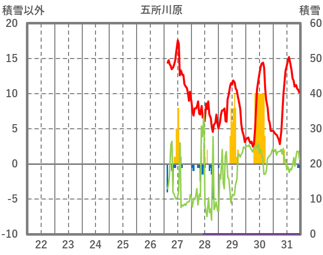 | 日 | 時 | 気温 | 降水 | 風向/風速 | 日照 | 積雪 | 降雪 |