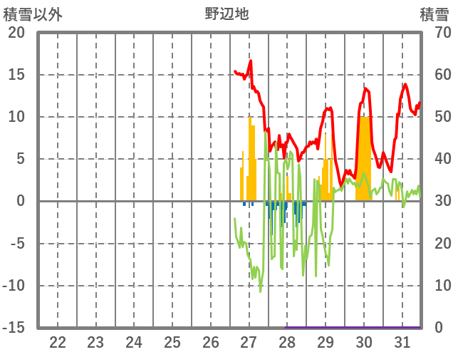 | 日 | 時 | 気温 | 降水 | 風向/風速 | 日照 | 積雪 | 降雪 |