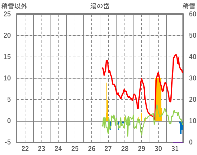 | 日 | 時 | 気温 | 降水 | 風向/風速 | 日照 | 積雪 | 降雪 |