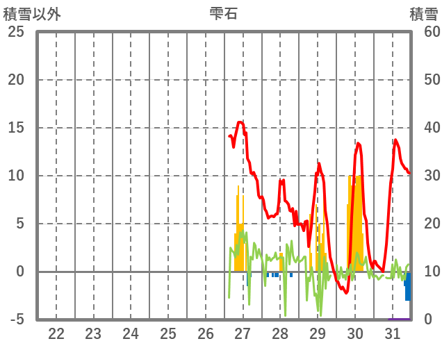 | 日 | 時 | 気温 | 降水 | 風向/風速 | 日照 | 積雪 | 降雪 |