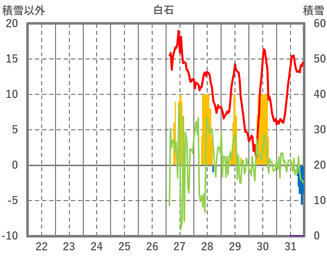 | 日 | 時 | 気温 | 降水 | 風向/風速 | 日照 | 積雪 | 降雪 |