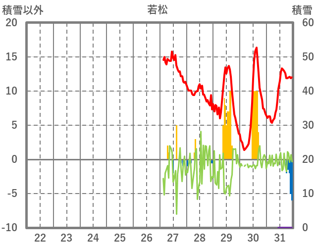 | 日 | 時 | 気温 | 降水 | 風向/風速 | 日照 | 積雪 | 降雪 |