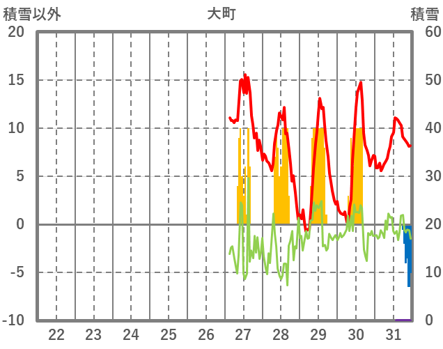 | 日 | 時 | 気温 | 降水 | 風向/風速 | 日照 | 積雪 | 降雪 |