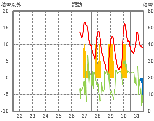| 日 | 時 | 気温 | 降水 | 風向/風速 | 日照 | 積雪 | 降雪 |