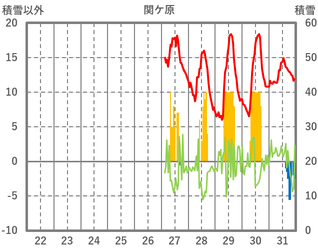| 日 | 時 | 気温 | 降水 | 風向/風速 | 日照 | 積雪 | 降雪 |