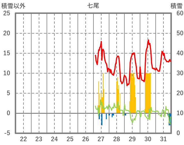 | 日 | 時 | 気温 | 降水 | 風向/風速 | 日照 | 積雪 | 降雪 |