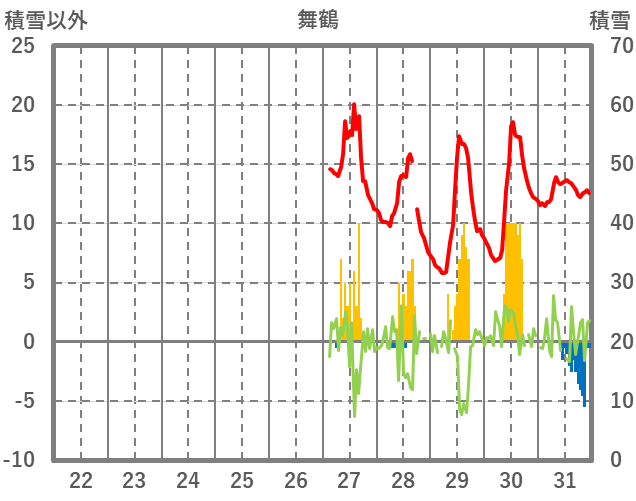 | 日 | 時 | 気温 | 降水 | 風向/風速 | 日照 | 積雪 | 降雪 |