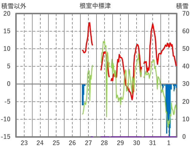 | 日 | 時 | 気温 | 降水 | 風向/風速 | 日照 | 積雪 | 降雪 |