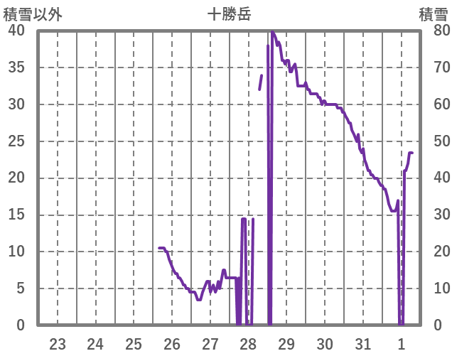| 日 | 時 | 気温 | 降水 | 風向/風速 | 日照 | 積雪 | 降雪 |