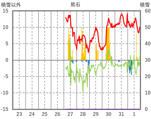 | 日 | 時 | 気温 | 降水 | 風向/風速 | 日照 | 積雪 | 降雪 |