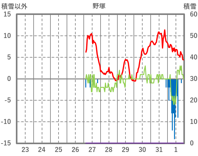 | 日 | 時 | 気温 | 降水 | 風向/風速 | 日照 | 積雪 | 降雪 |