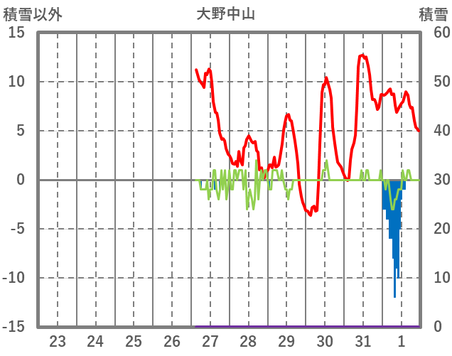 | 日 | 時 | 気温 | 降水 | 風向/風速 | 日照 | 積雪 | 降雪 |