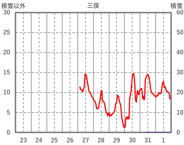 | 日 | 時 | 気温 | 降水 | 風向/風速 | 日照 | 積雪 | 降雪 |
