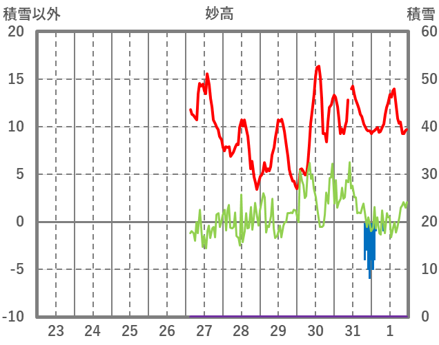| 日 | 時 | 気温 | 降水 | 風向/風速 | 日照 | 積雪 | 降雪 |