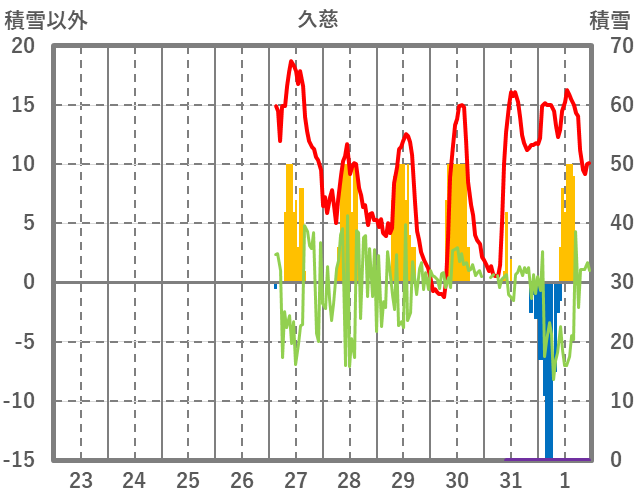 | 日 | 時 | 気温 | 降水 | 風向/風速 | 日照 | 積雪 | 降雪 |