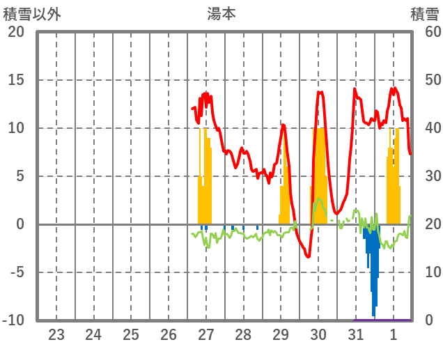 | 日 | 時 | 気温 | 降水 | 風向/風速 | 日照 | 積雪 | 降雪 |