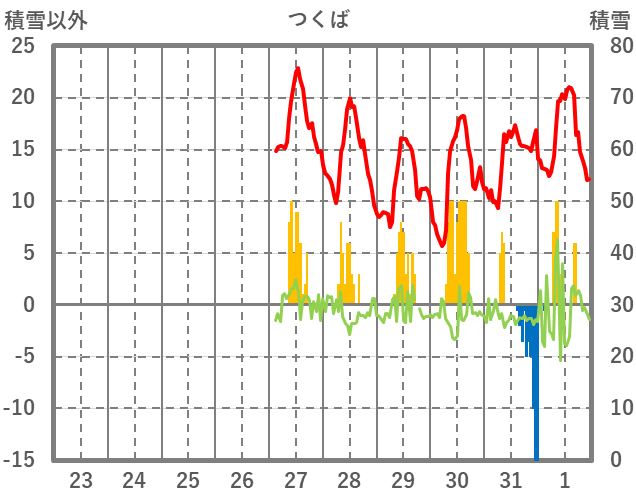 | 日 | 時 | 気温 | 降水 | 風向/風速 | 日照 | 積雪 | 降雪 |
